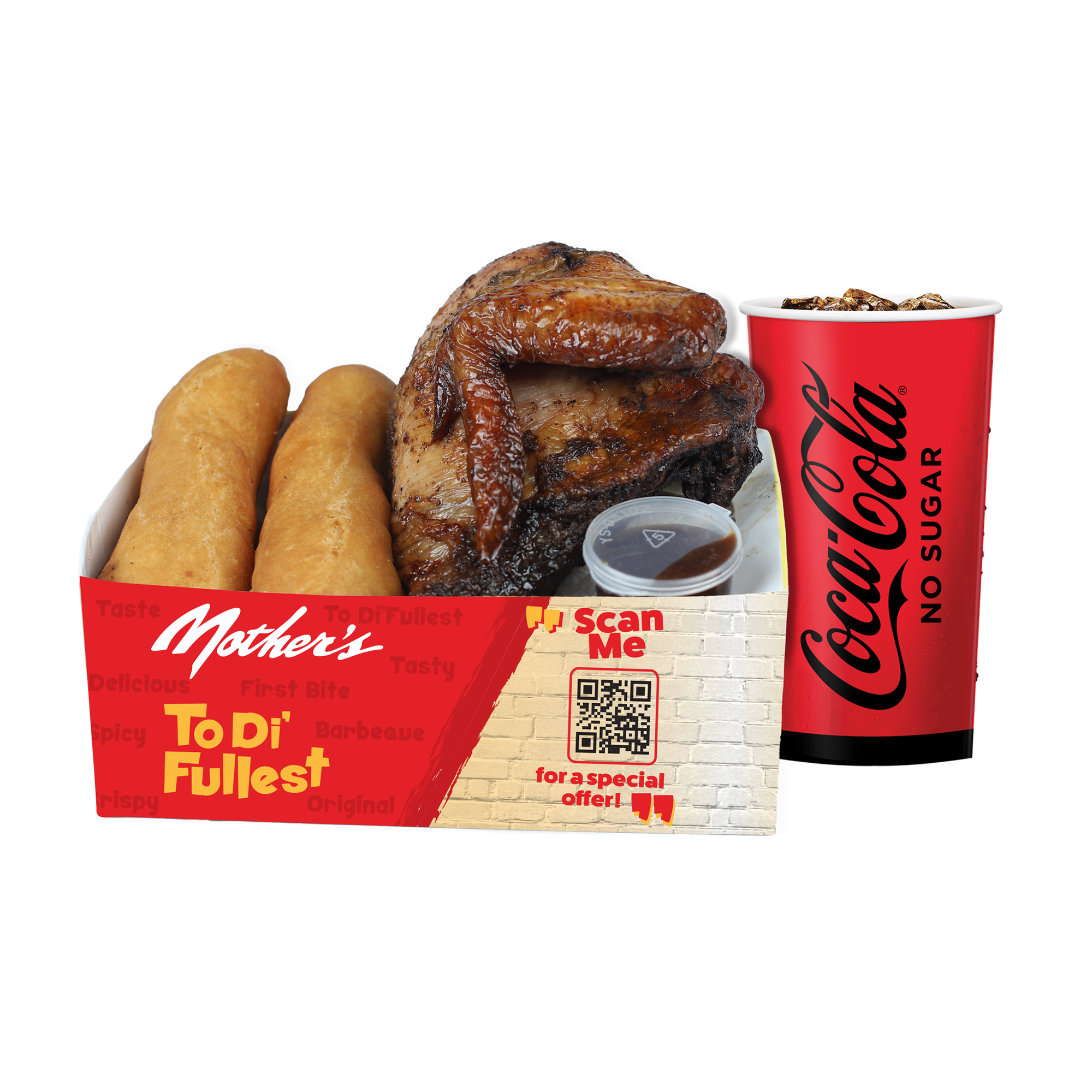 Jerk Chicken Quarter only OR Combo served with 2 Festivals and a 20 oz bottled soda. Your choice of Breast & wing OR Leg & tight