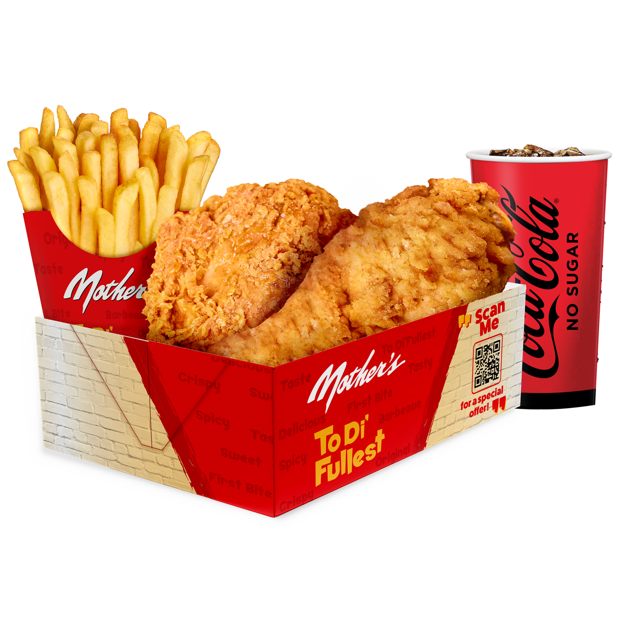 2 pieces Chicken, fries and Soda