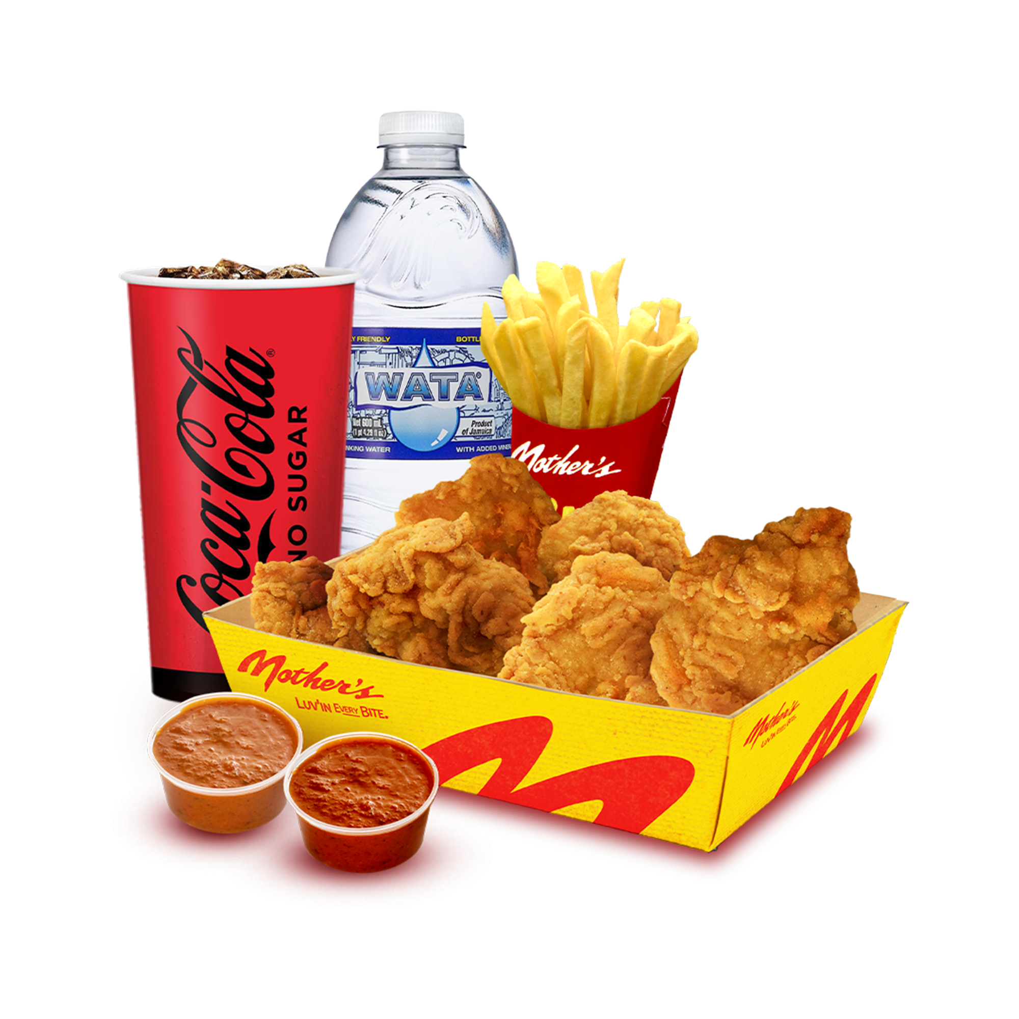 6 pieces of Chicken Meal ONLY or a Combo served with 3 bottled sodas (20oz) and 3 regular fries